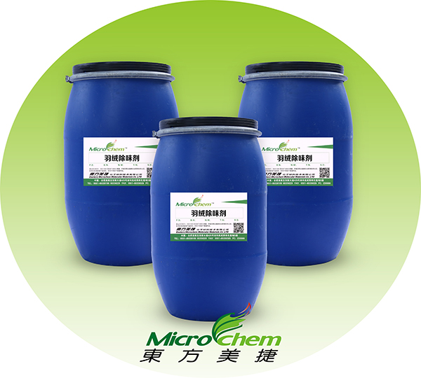 羽绒除味剂(OD-FK)主要针对相对湿度条件下易产生难闻气味的羽绒(由于饲料、动物饲养条件、细菌侵蚀等原因造成)进行整理。本品在水洗第一次漂洗浴中加入,除去羽绒异味。除味后的羽绒可制作帐篷、猎装、登山服、防水洗枕头、被褥等特种制品。